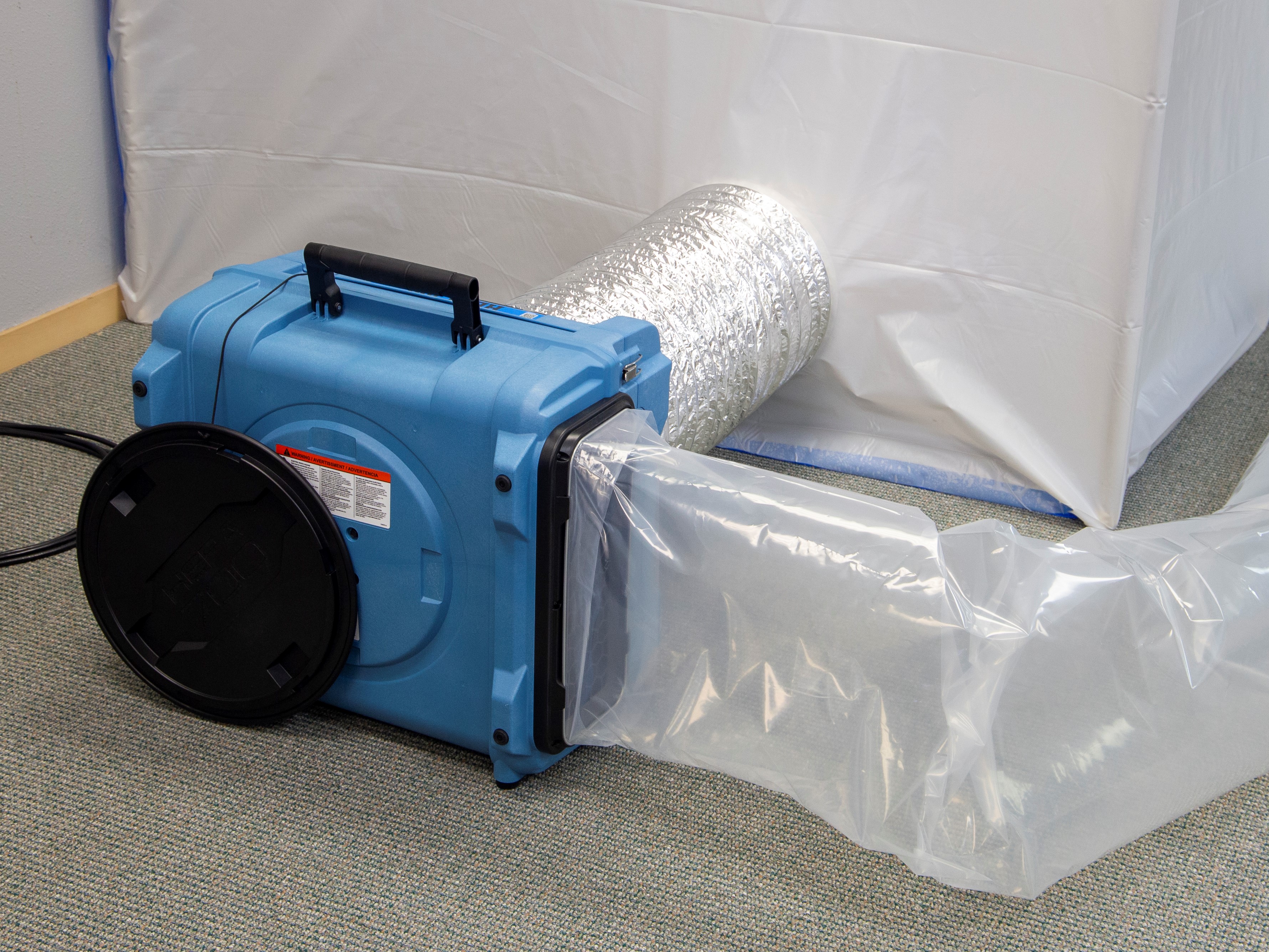 That’s why negative pressure air containments should only be created using an air scrubber like the Dri-Eaz HEPA 700. Independent testing shows that it exceeds HEPA, removing 99.99% of .1-.5 micron particles. The unit’s variable speed is also critical  to maintain the correct level of negative air pressure and for the integrity of any containment, using the HEPA 700 ducting.